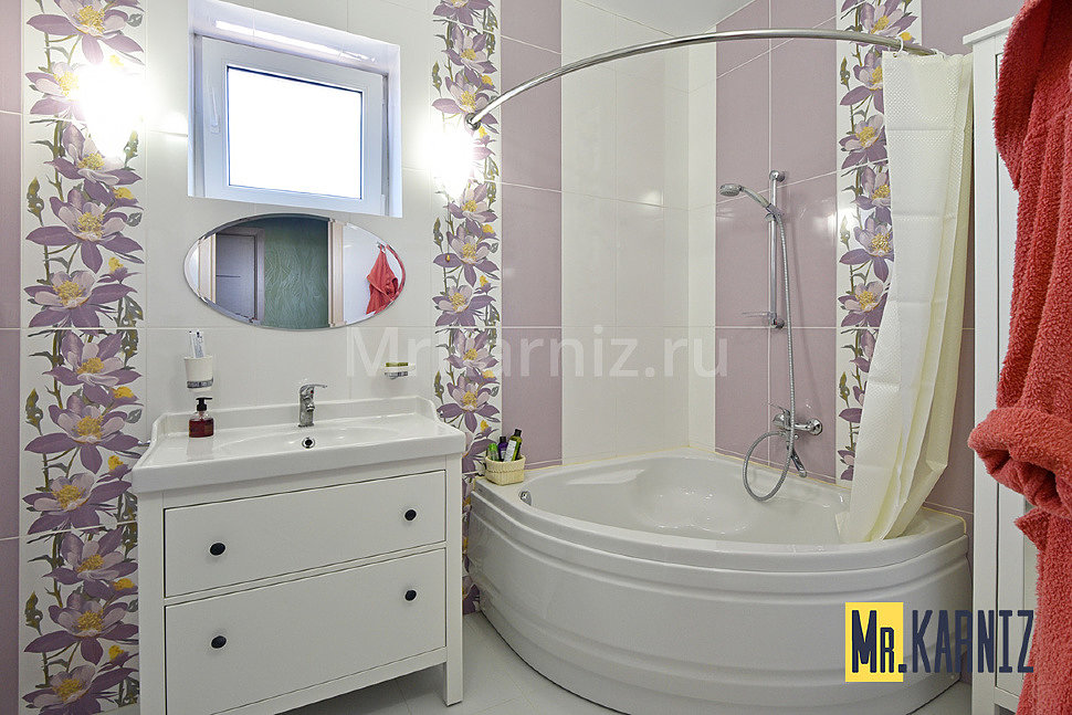 Длина цельных карнизов доходит до 3 метров. Мы поможем подобрать штангу даже для огромных ванн (вроде Santek Синтра 170х110 см).